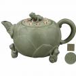 整个壶身以温润的青色调为主,青蛙与荷叶皆呈青色,清新雅致,一派荷塘清趣。在这片青绿世界中,莲蓬中那十颗粒粒饱满、跃跃欲出的黄色莲籽,无疑成为了画龙点睛之笔。鲜明的色彩对比不仅丰富了视觉层次,更将丰收的喜悦与生命的活力凝聚于方寸之间。