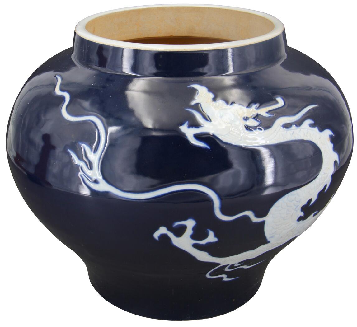 祭蓝釉留白龙纹罐