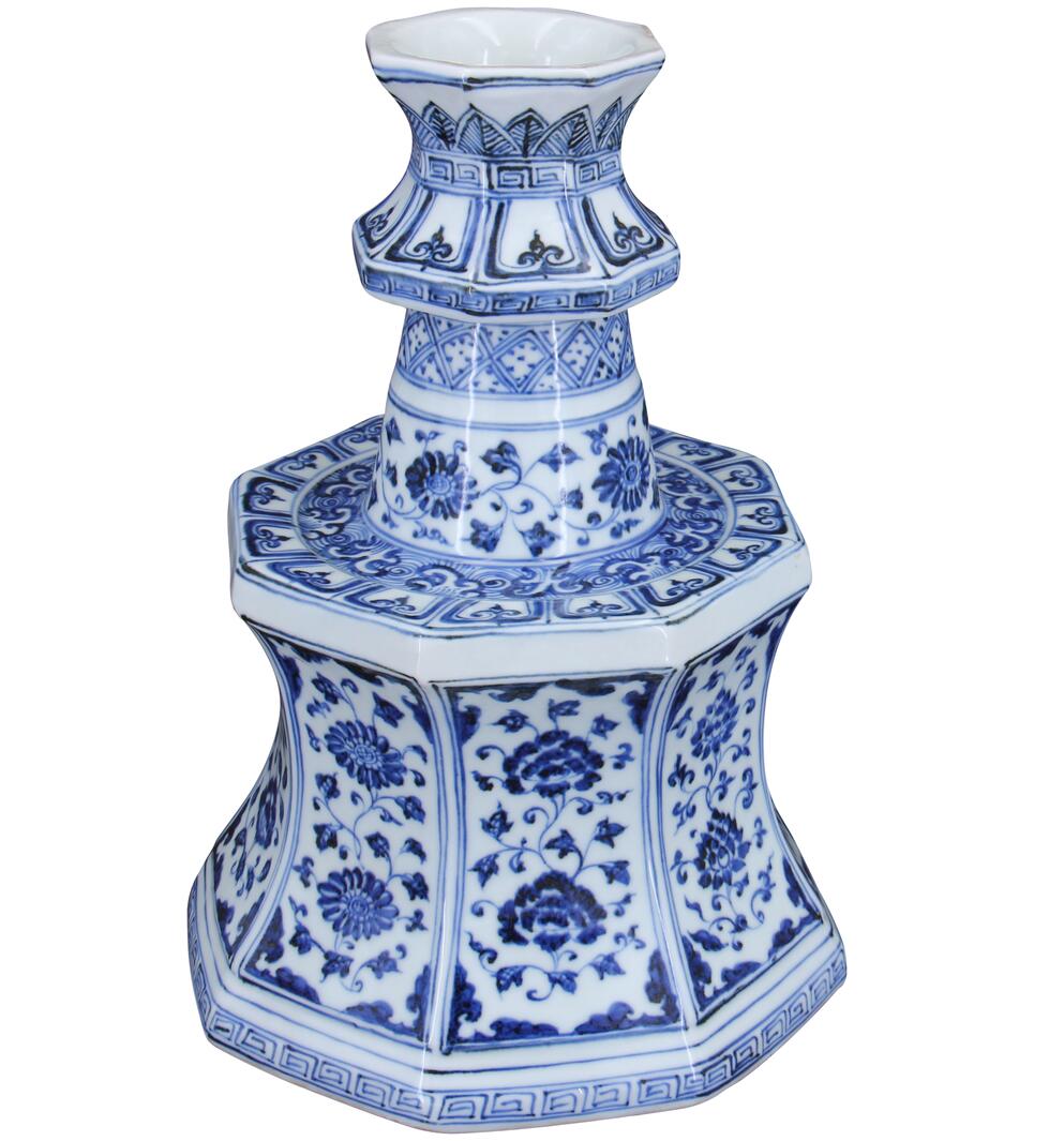 大明宣德年制款青花花卉八棱烛台