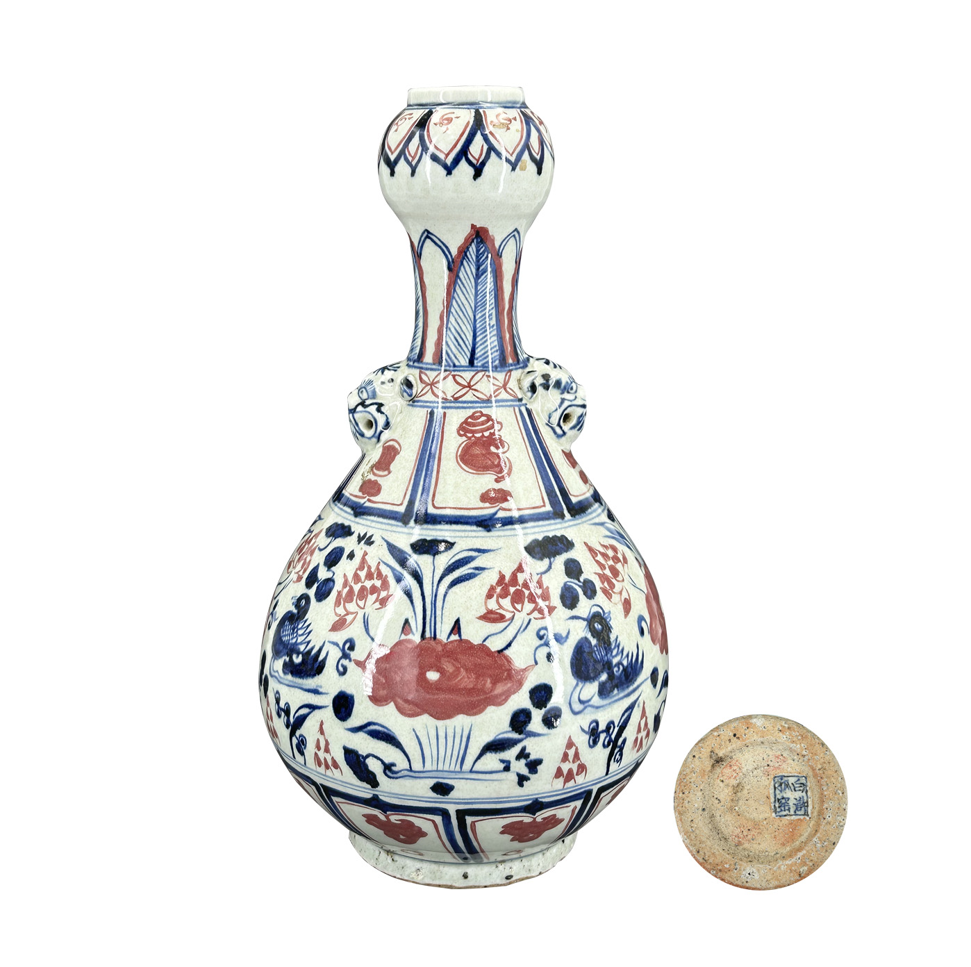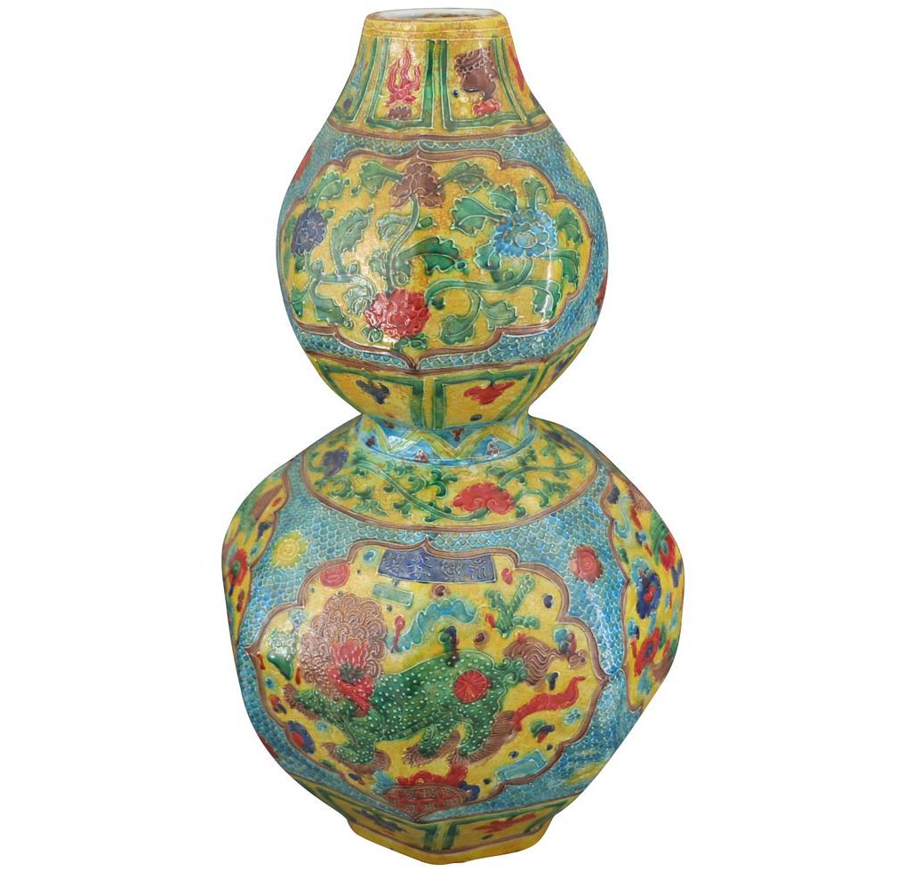永乐年制五彩瑞兽开光八棱葫芦瓶
