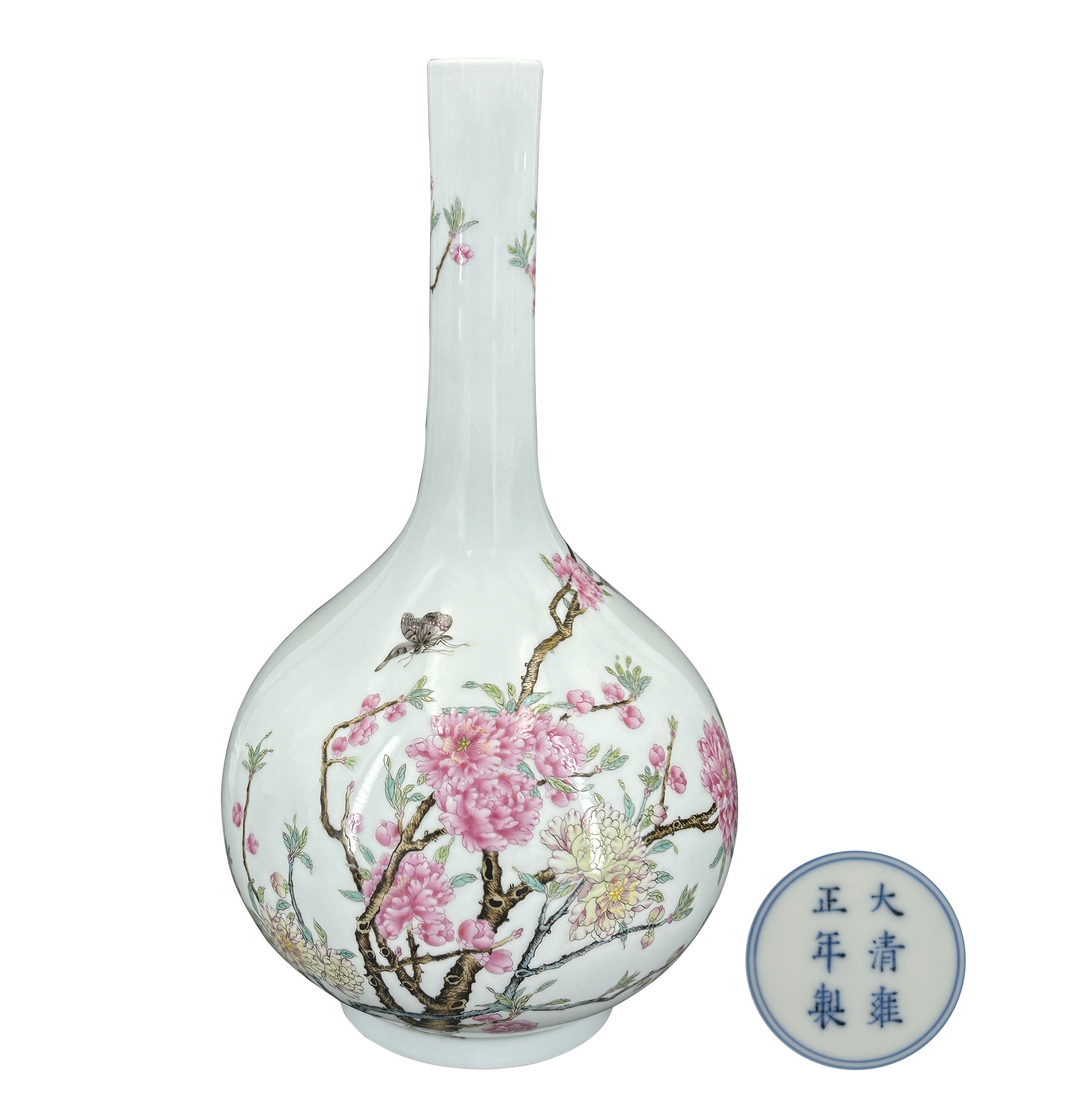 大清雍正年制珐琅彩花蝶纹长颈瓶