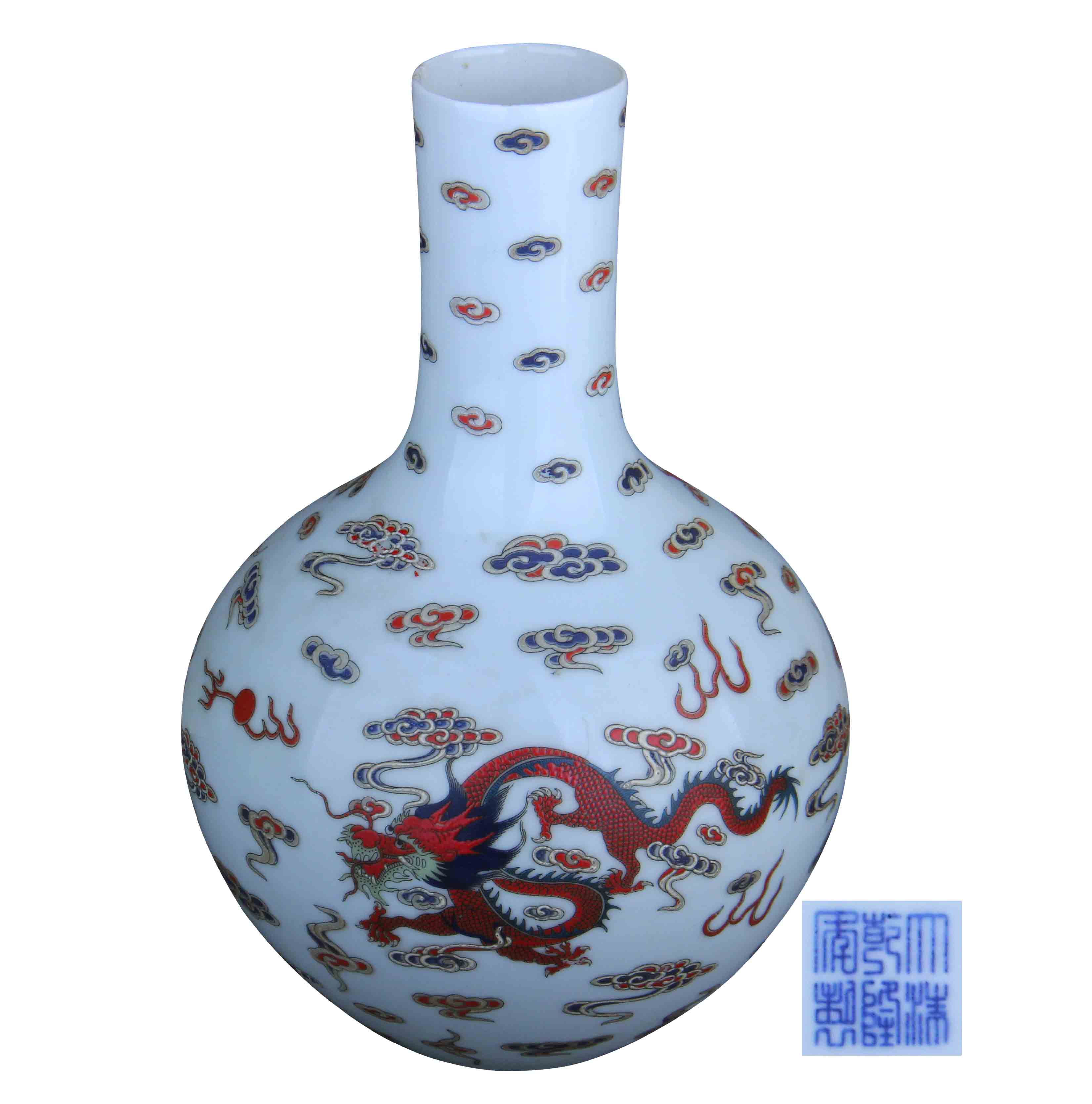 五彩龙纹天球瓶