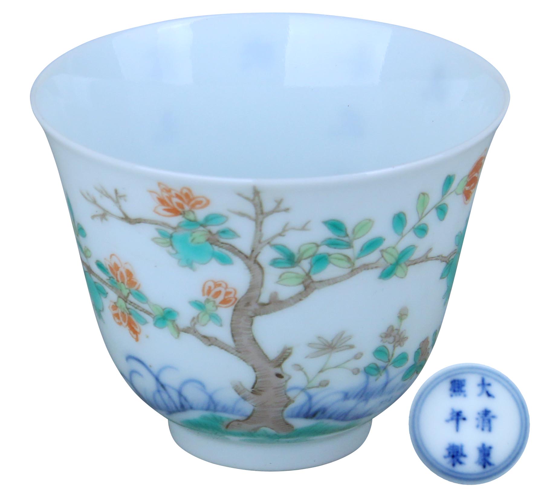 大清康熙年制花卉压手杯