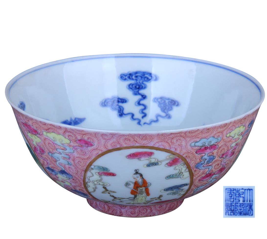 大清乾隆年制款粉彩开光人物碗