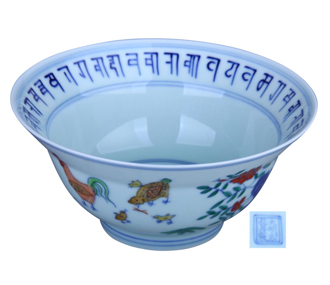 斗彩鸡缸梵纹折沿碗