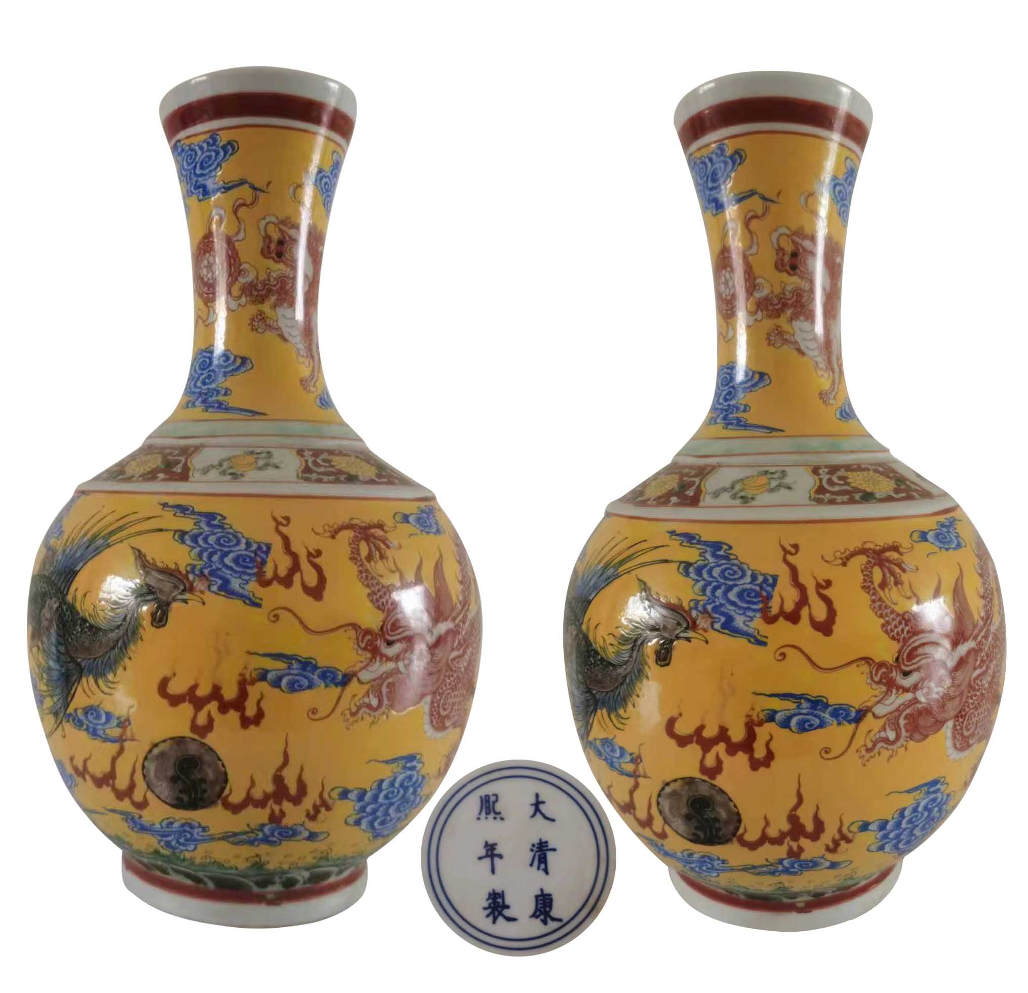 大清乾隆年制款粉彩龙凤纹天球瓶一对