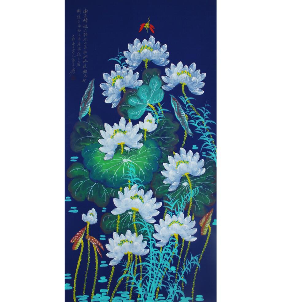 黄多良款《荷花青色》