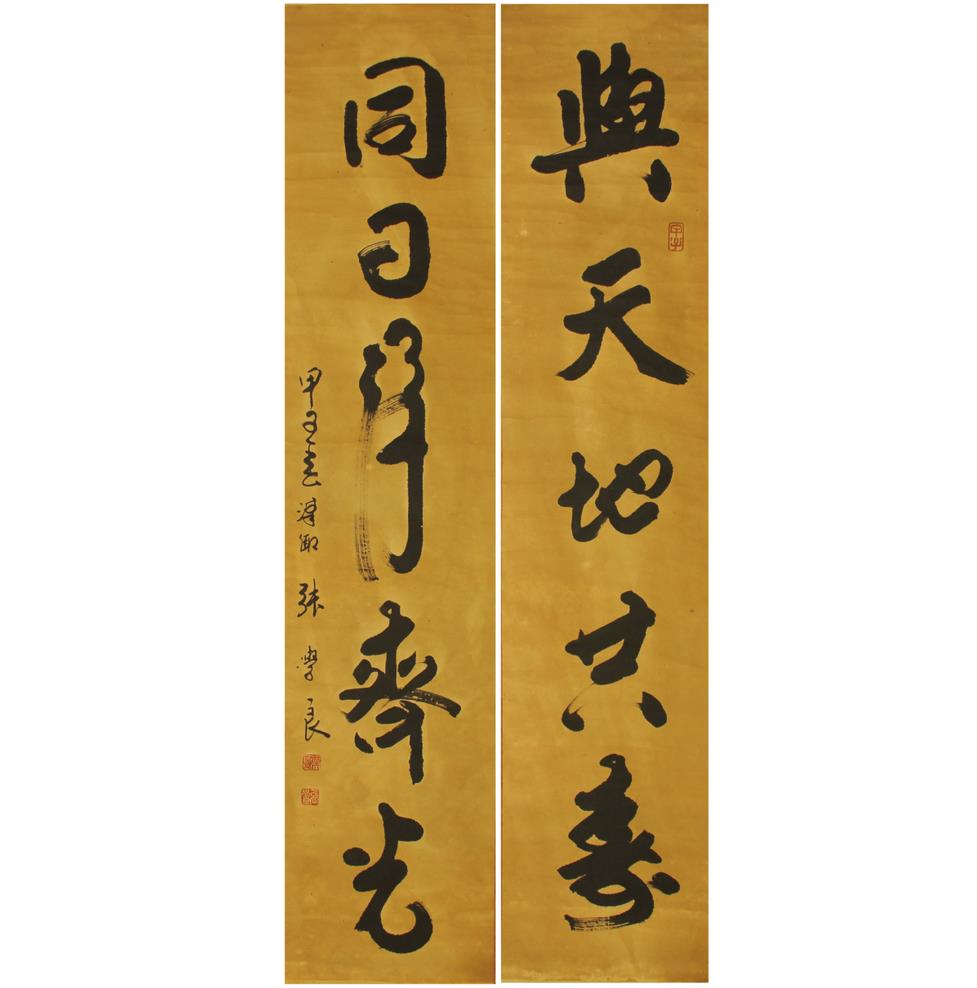 张学良款书法两条屏