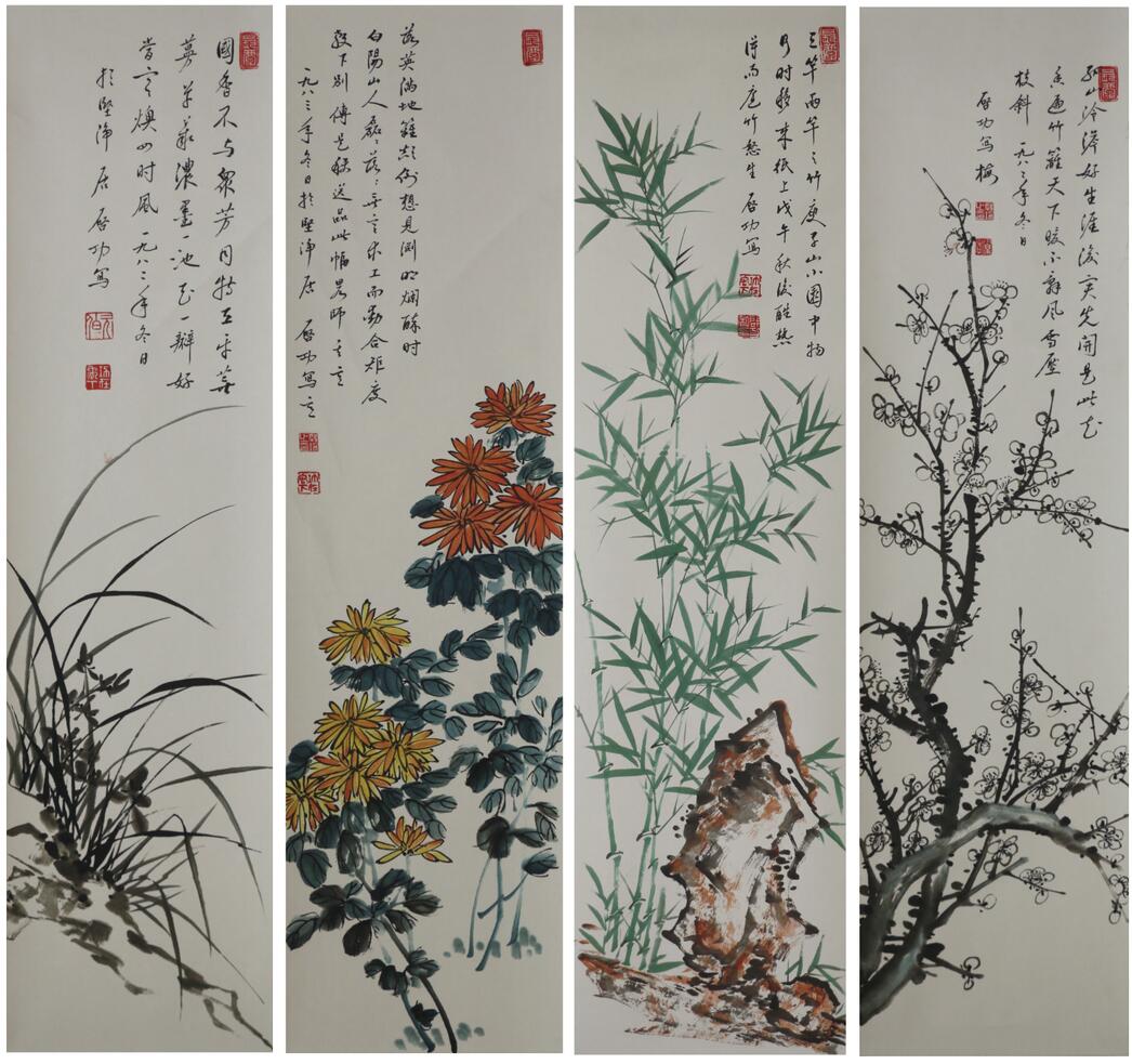 启功款 梅兰竹菊 四条屏