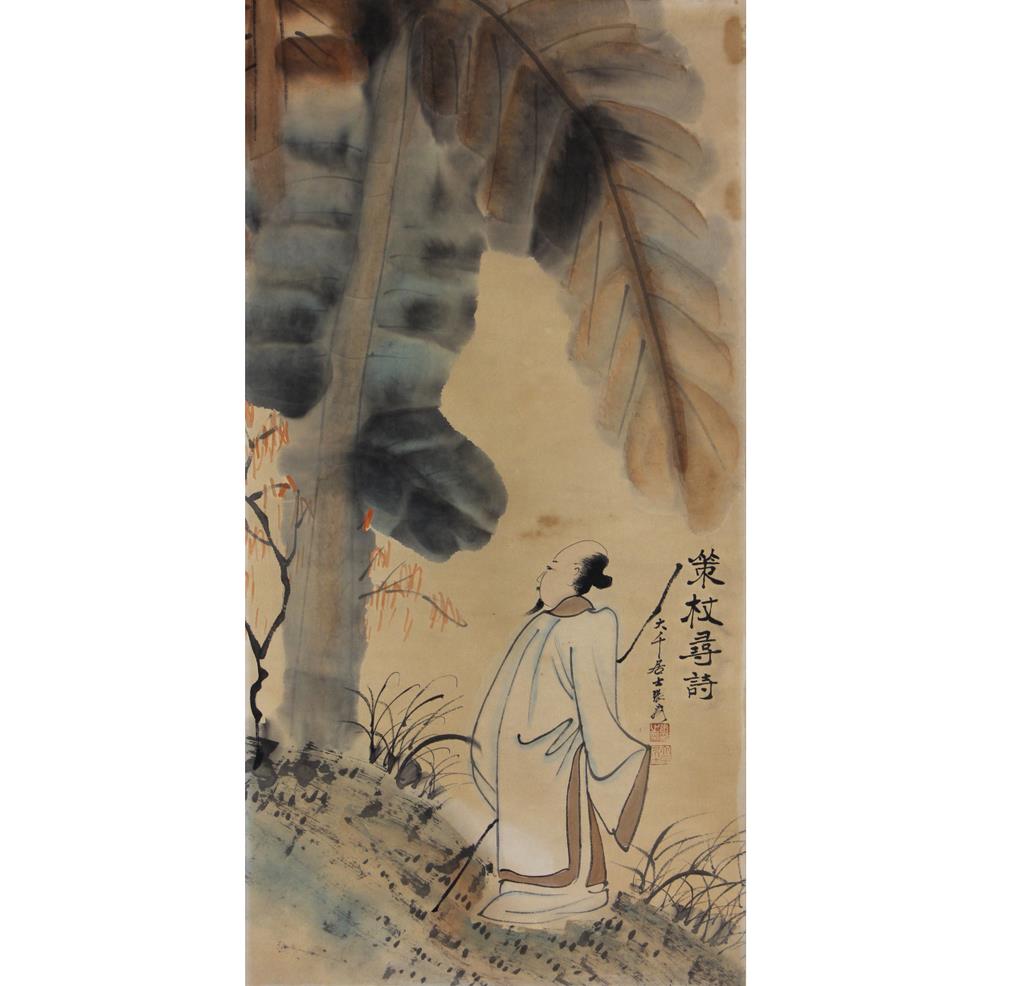 张大千款策杖寻诗
