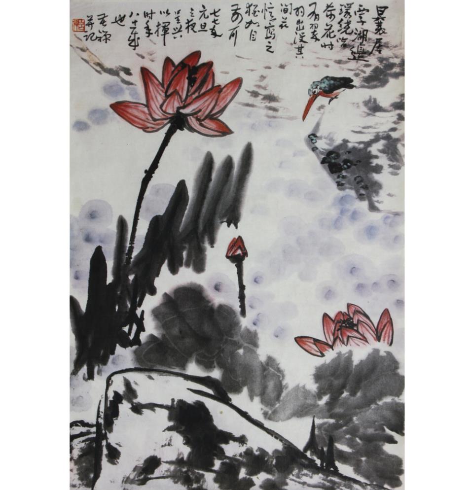 李苦禅款《荷花鹰》