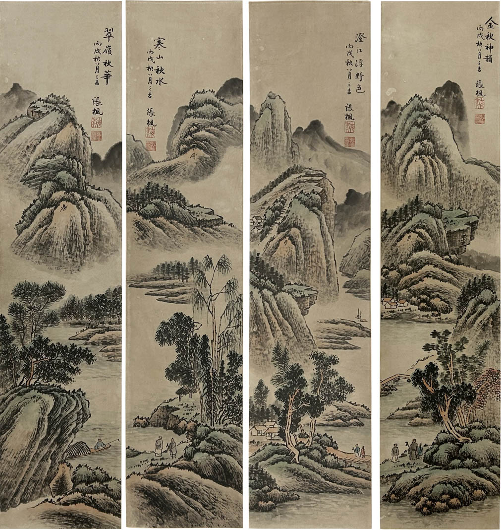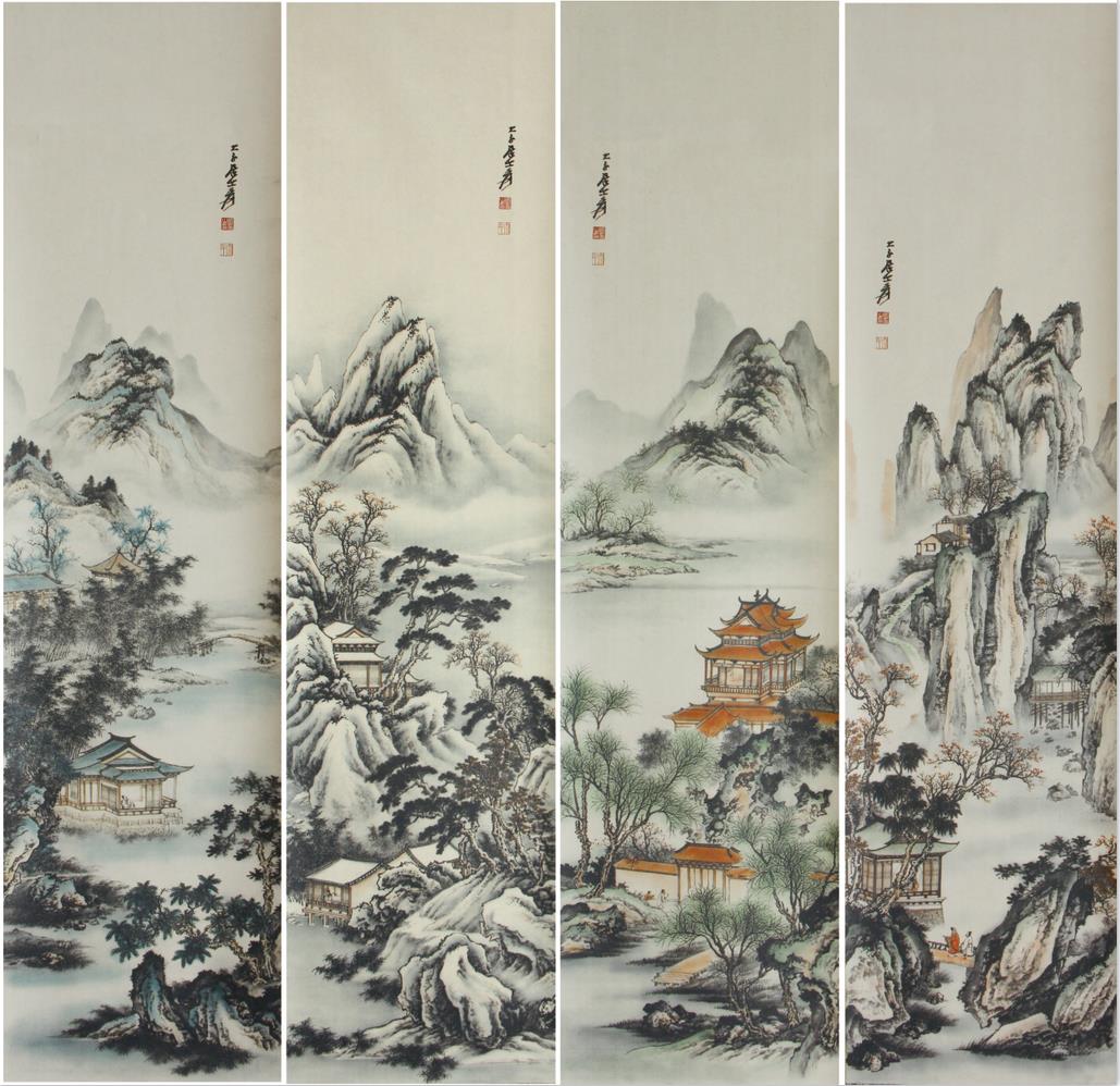 张大千山水四条屏