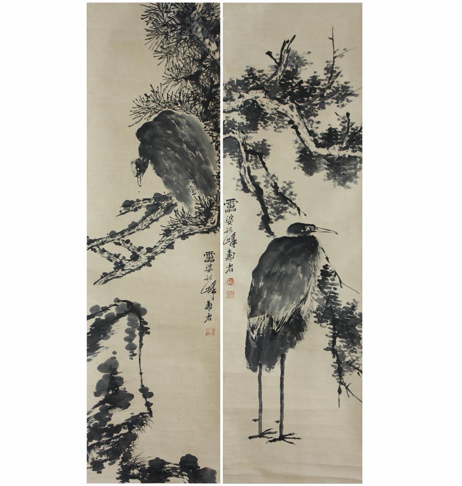 潘天寿花鸟两条屏