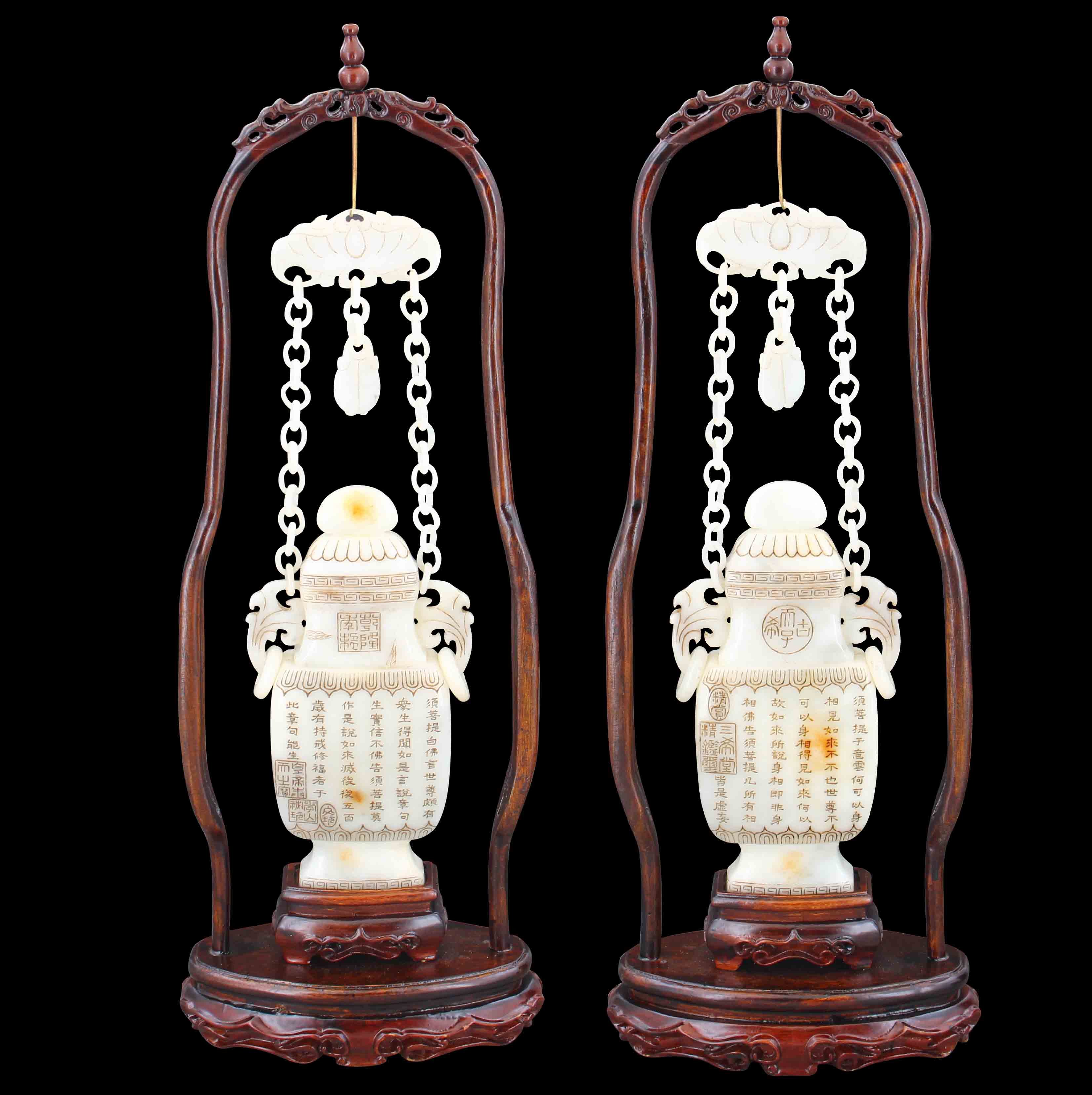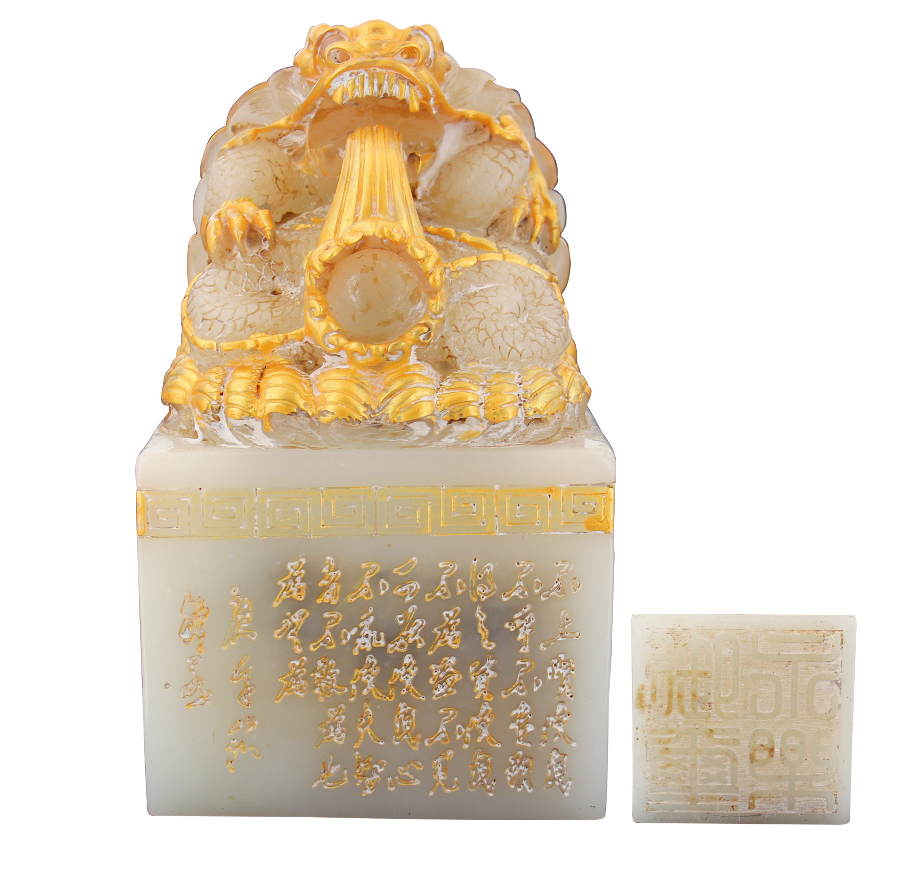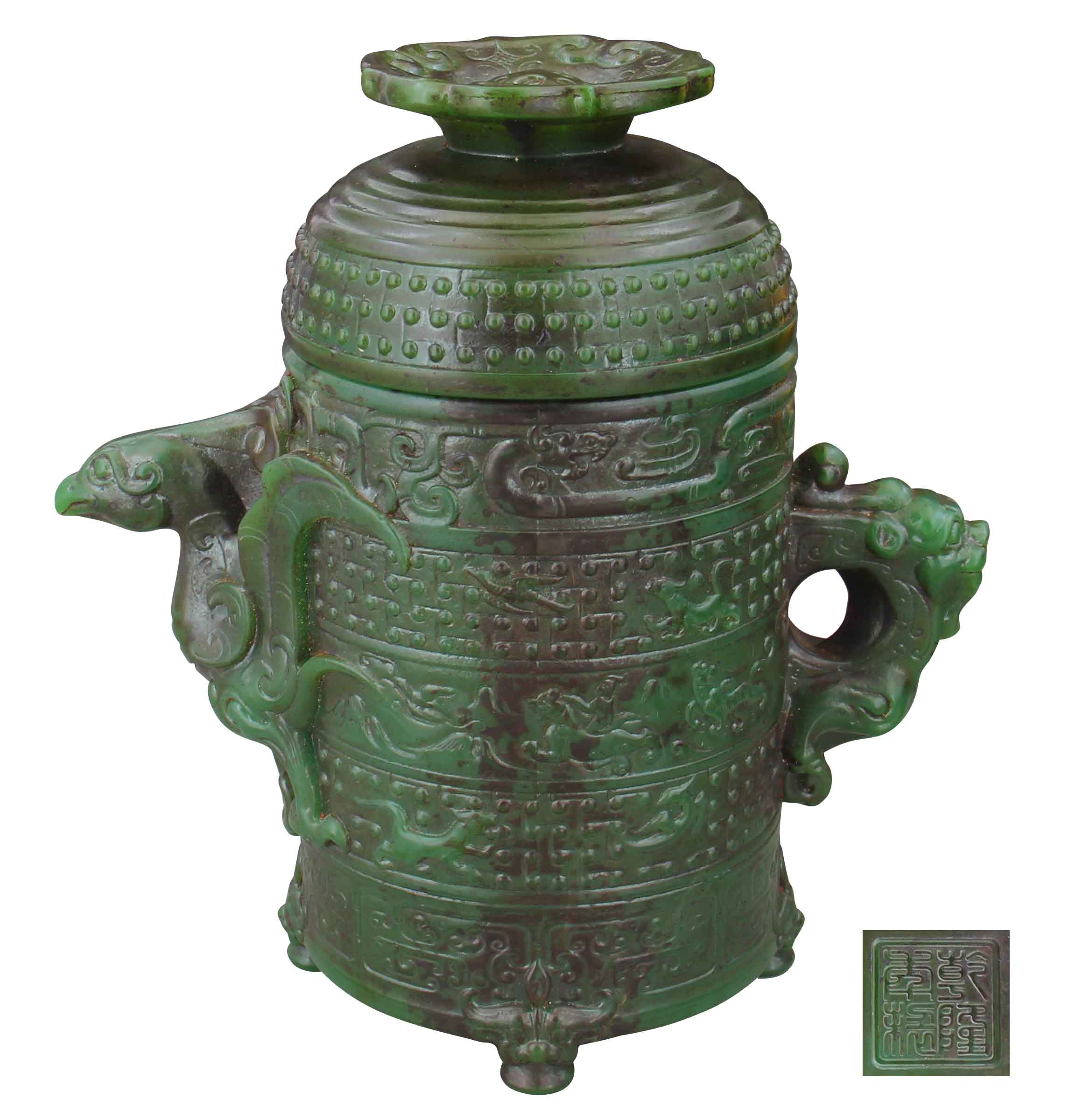 新疆和田碧玉·鼓钉飞禽走兽龙凤纹四足礼器