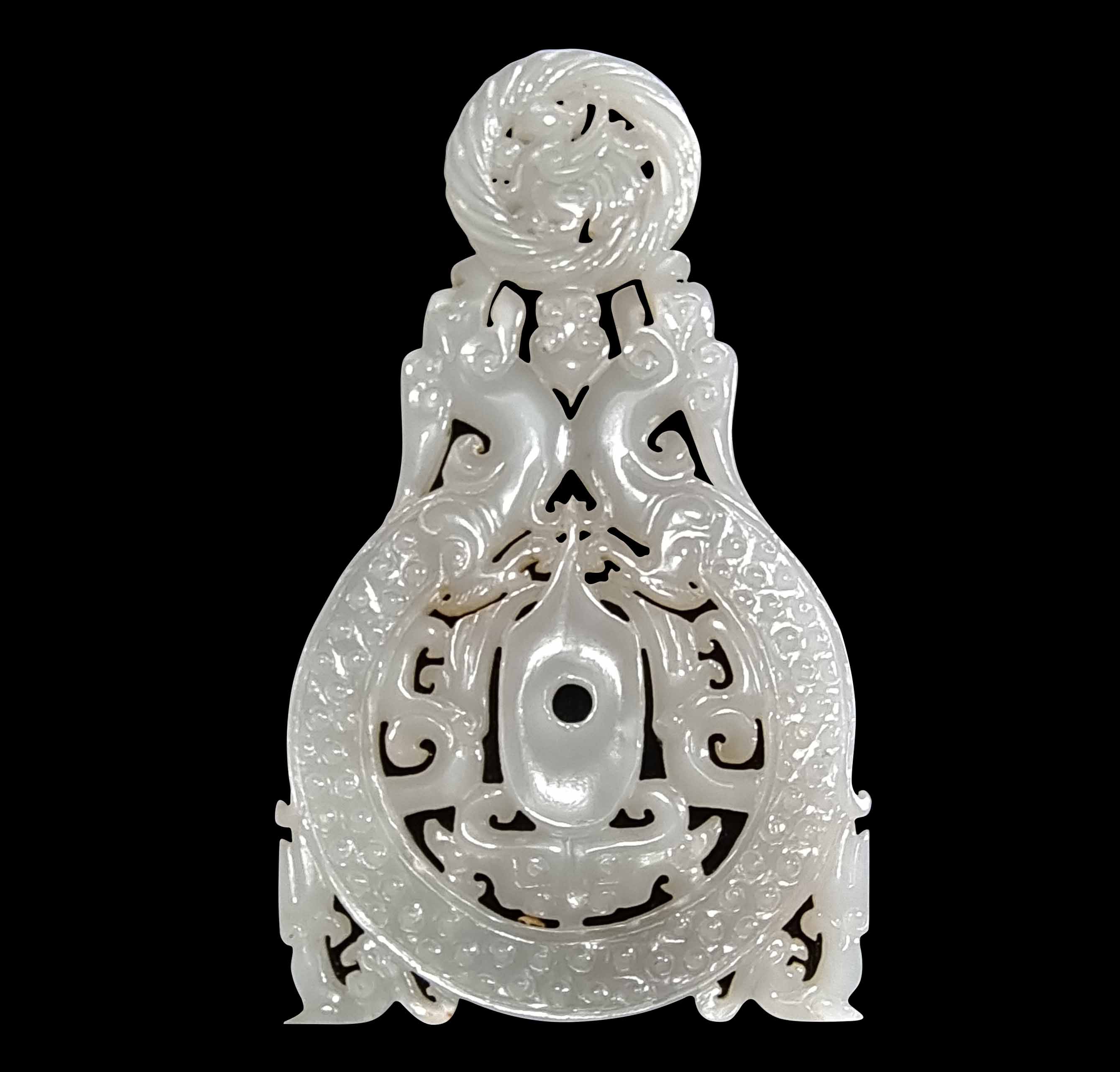 双龙延年谷纹韘心白玉璧