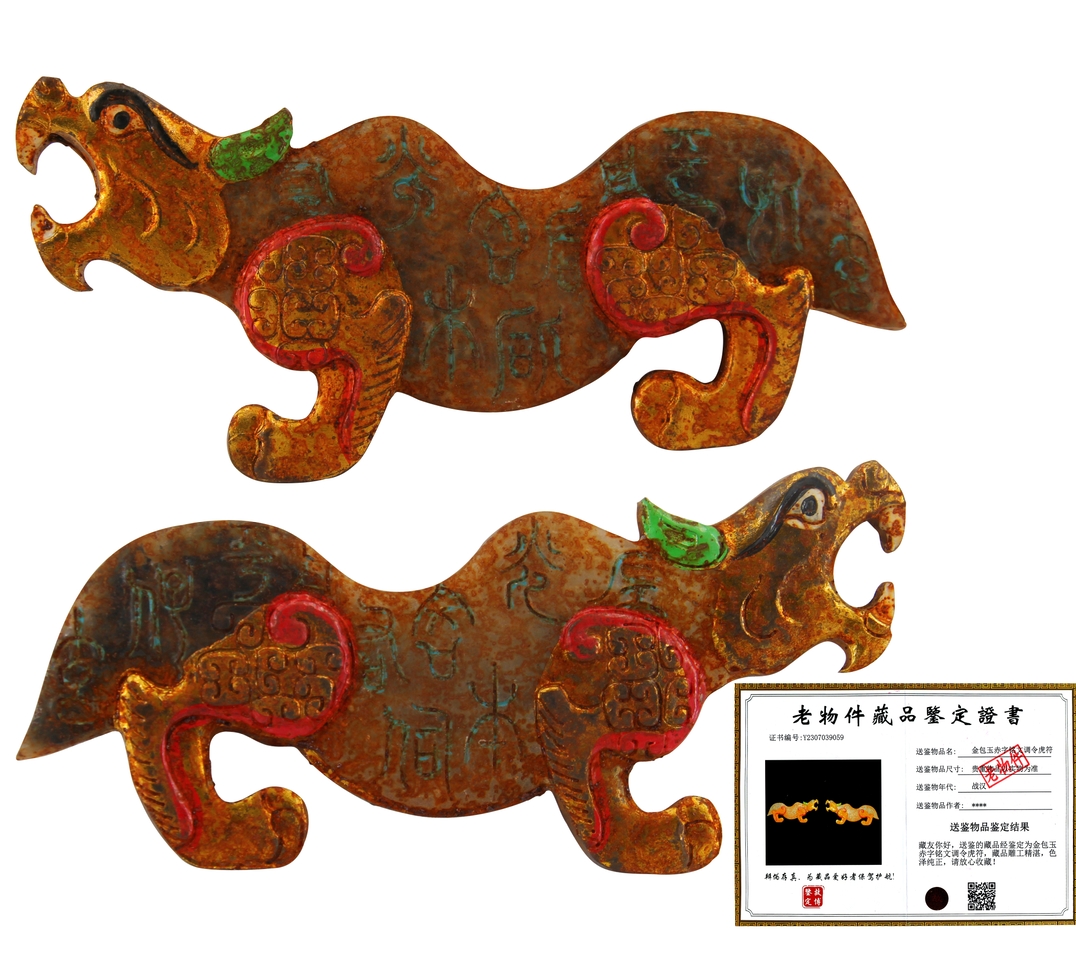 金包玉赤字铭文调令虎符 一对