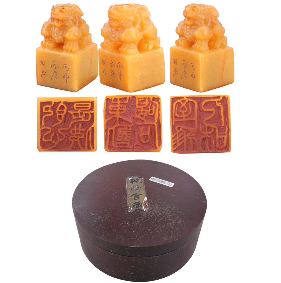 高翔作·四方瑞兽纽田黄印章(三枚)