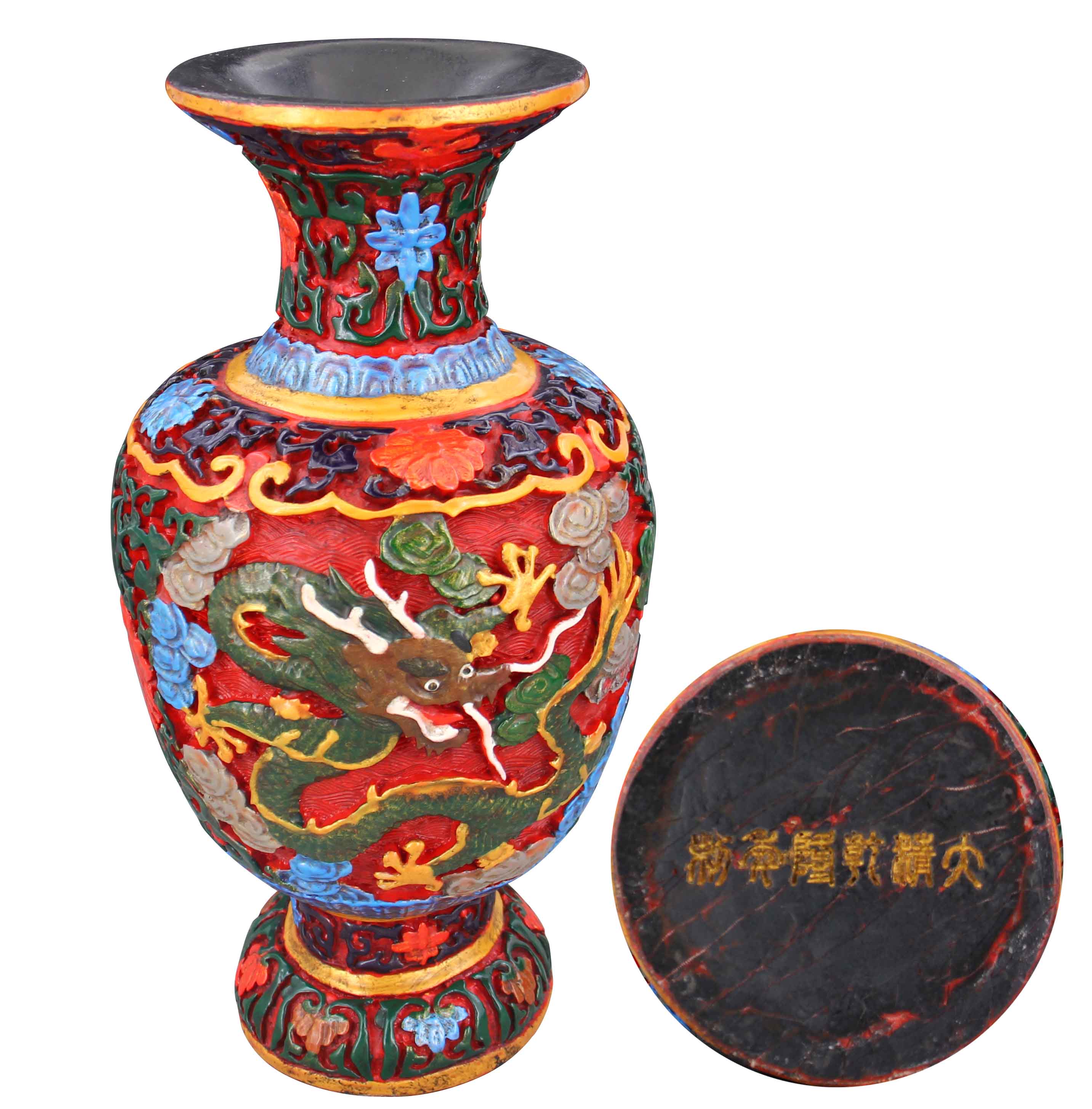 大清乾隆年制·漆器剔花龙纹撇口瓶
