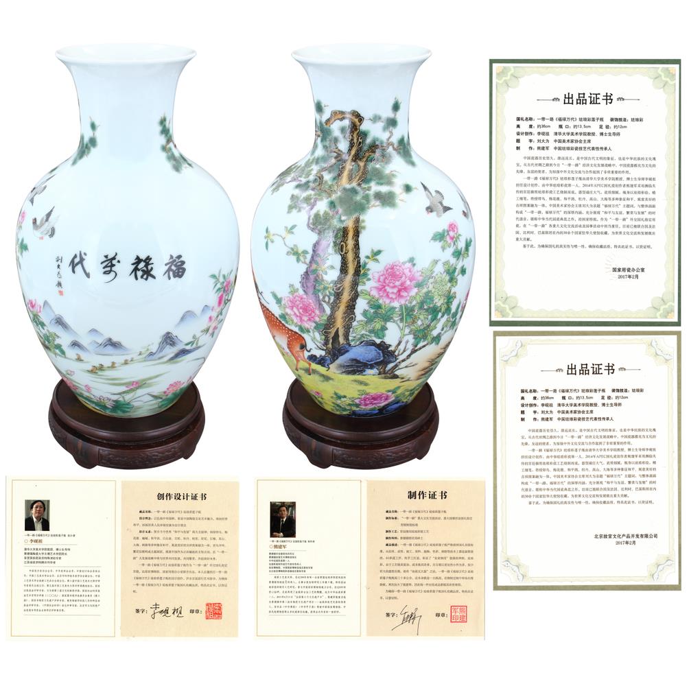 一带一路·《福禄万代》珐琅彩莲子瓶一对