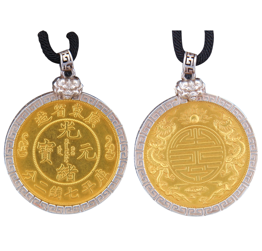 广东省造光绪元宝库平七钱二分双龙寿字币(金质)