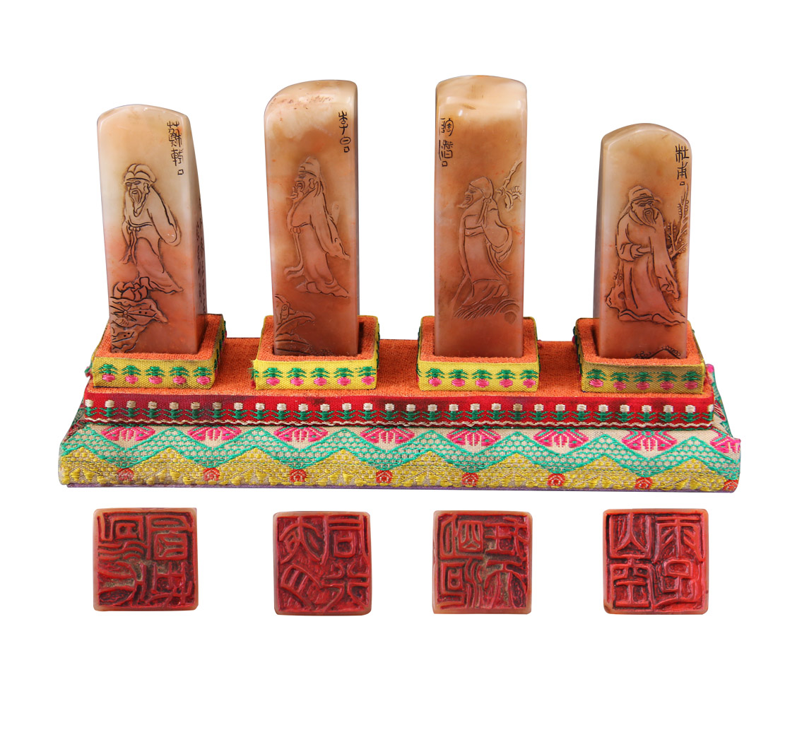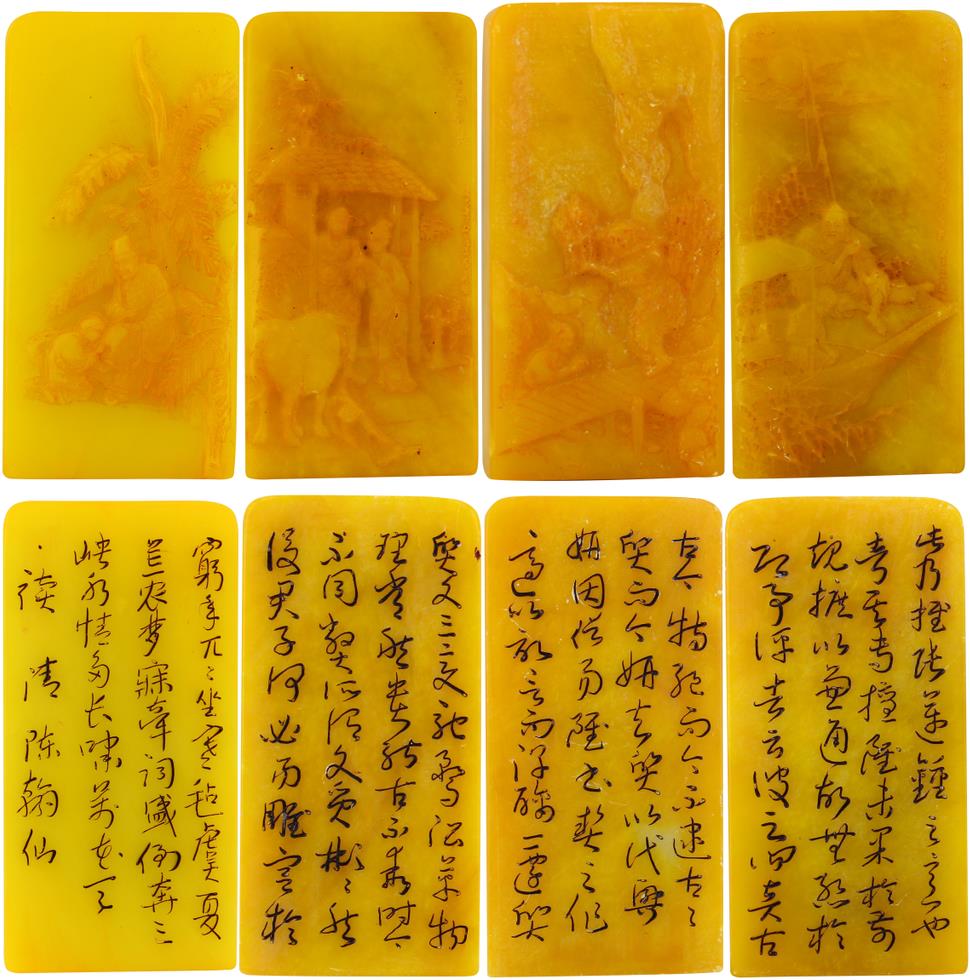 清·雕刻大师徐星州刻·寿山芙蓉冻石浅浮雕四大诗..