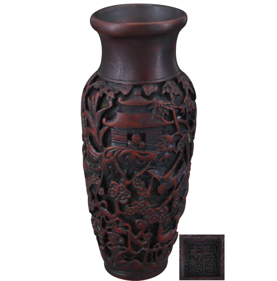乾隆年制款漆器镂空岁寒三友梅瓶