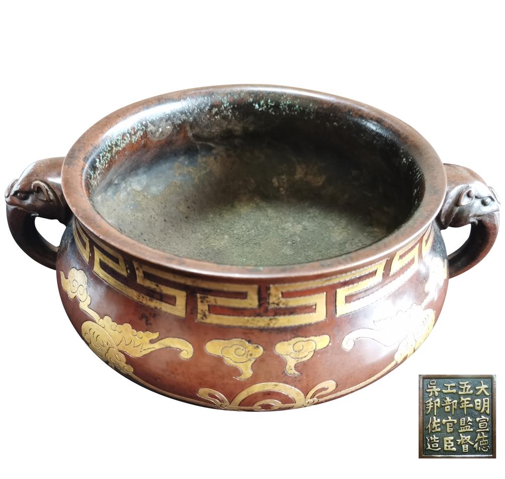 大明宣德五年监督工部官臣吴邦佐款双耳炉