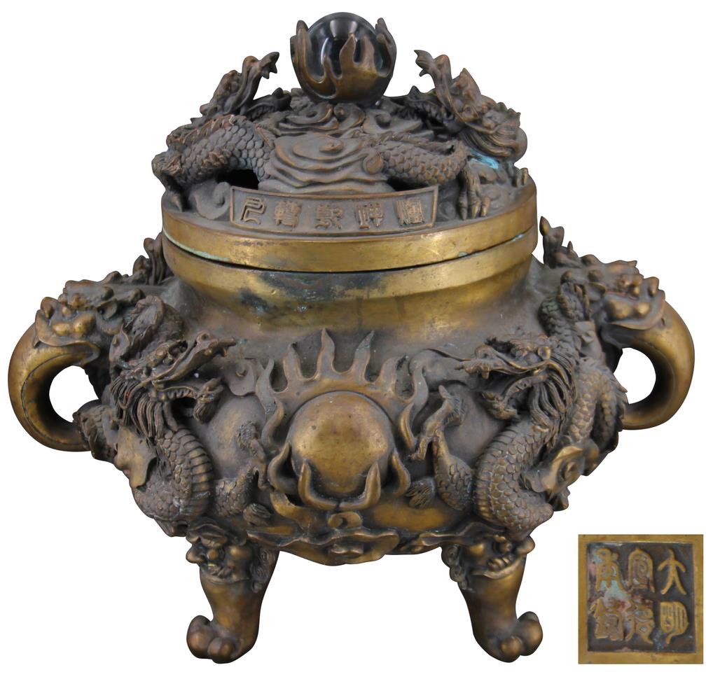 大明宣德年铸款二龙戏珠九转乾坤炉