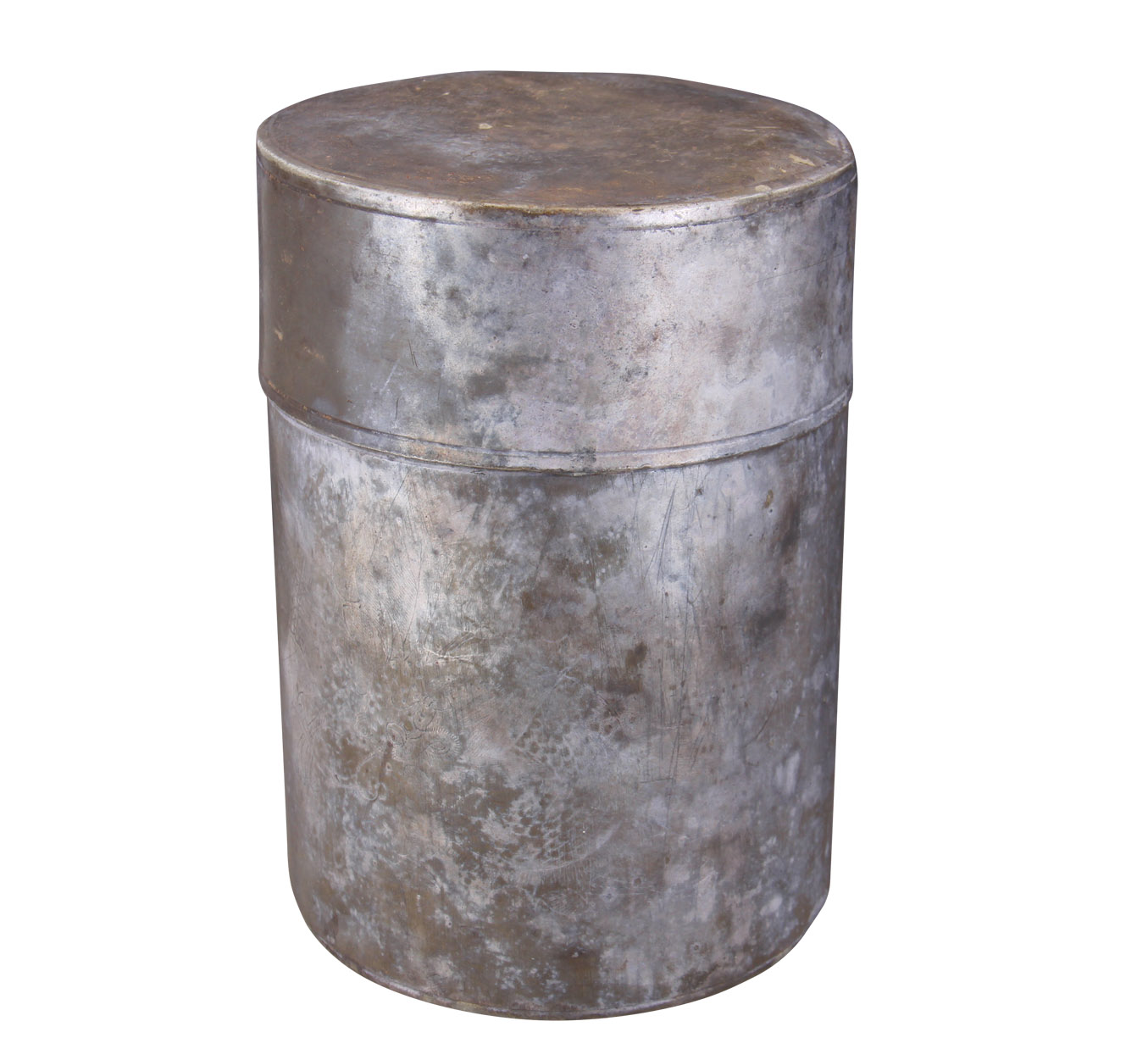 暗刻龙鹤纹锡筒