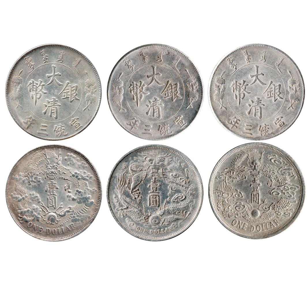 宣统三年大清银币一组“曲须龙,短须龙,大尾龙”