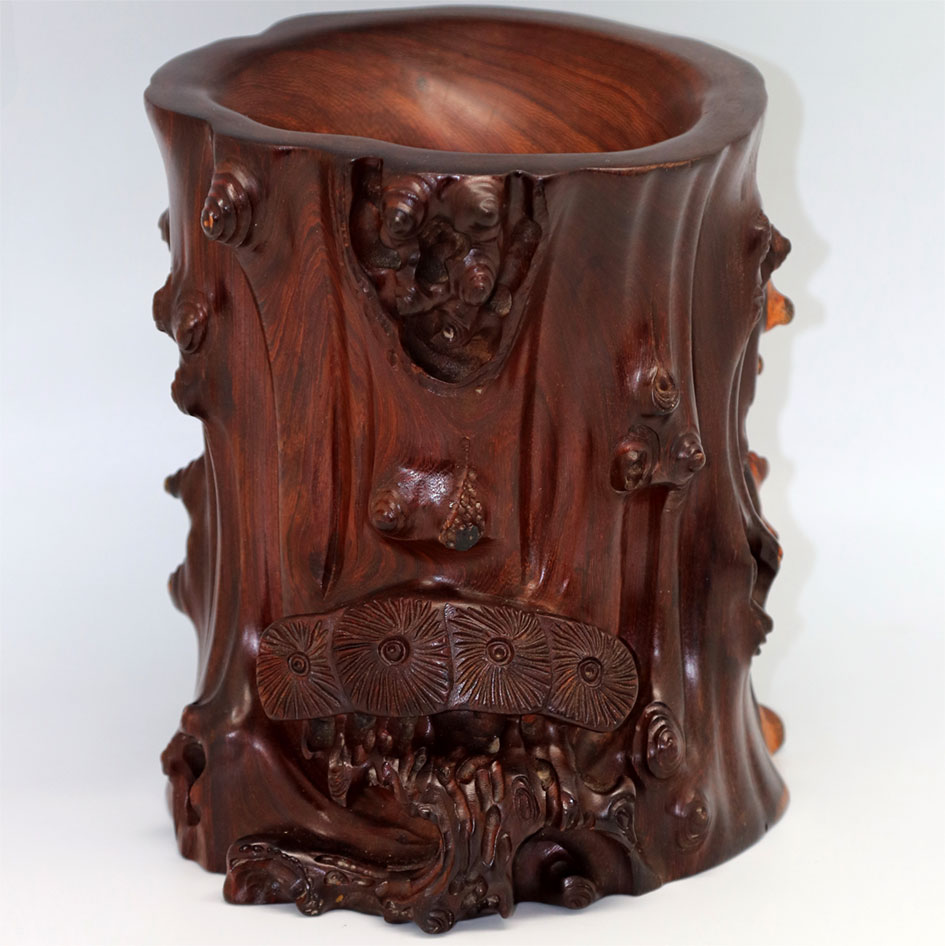 红木雕松树灵芝纹笔筒zy401-1