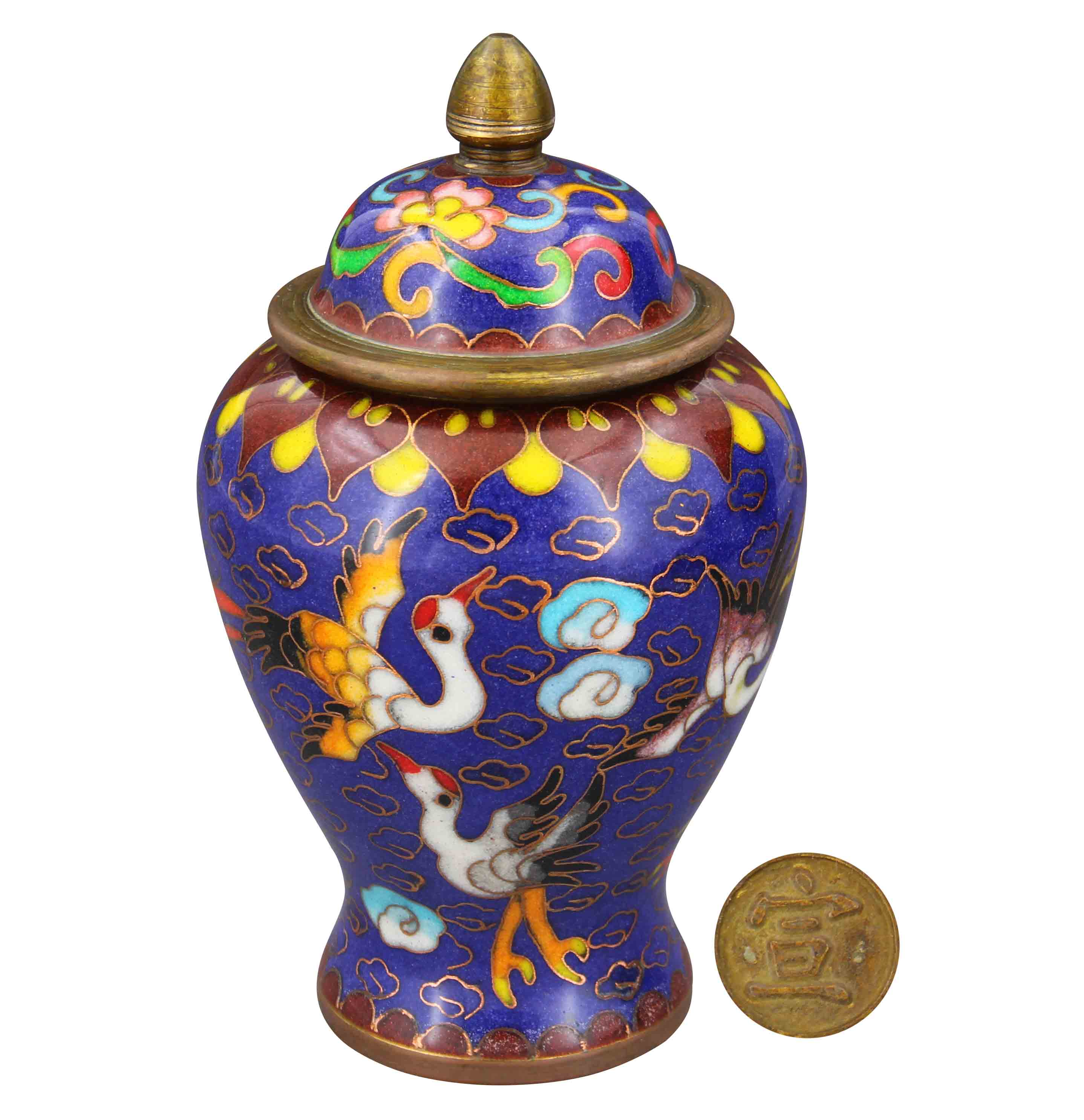 宣字款·掐丝景泰蓝鹤纹描金将军罐