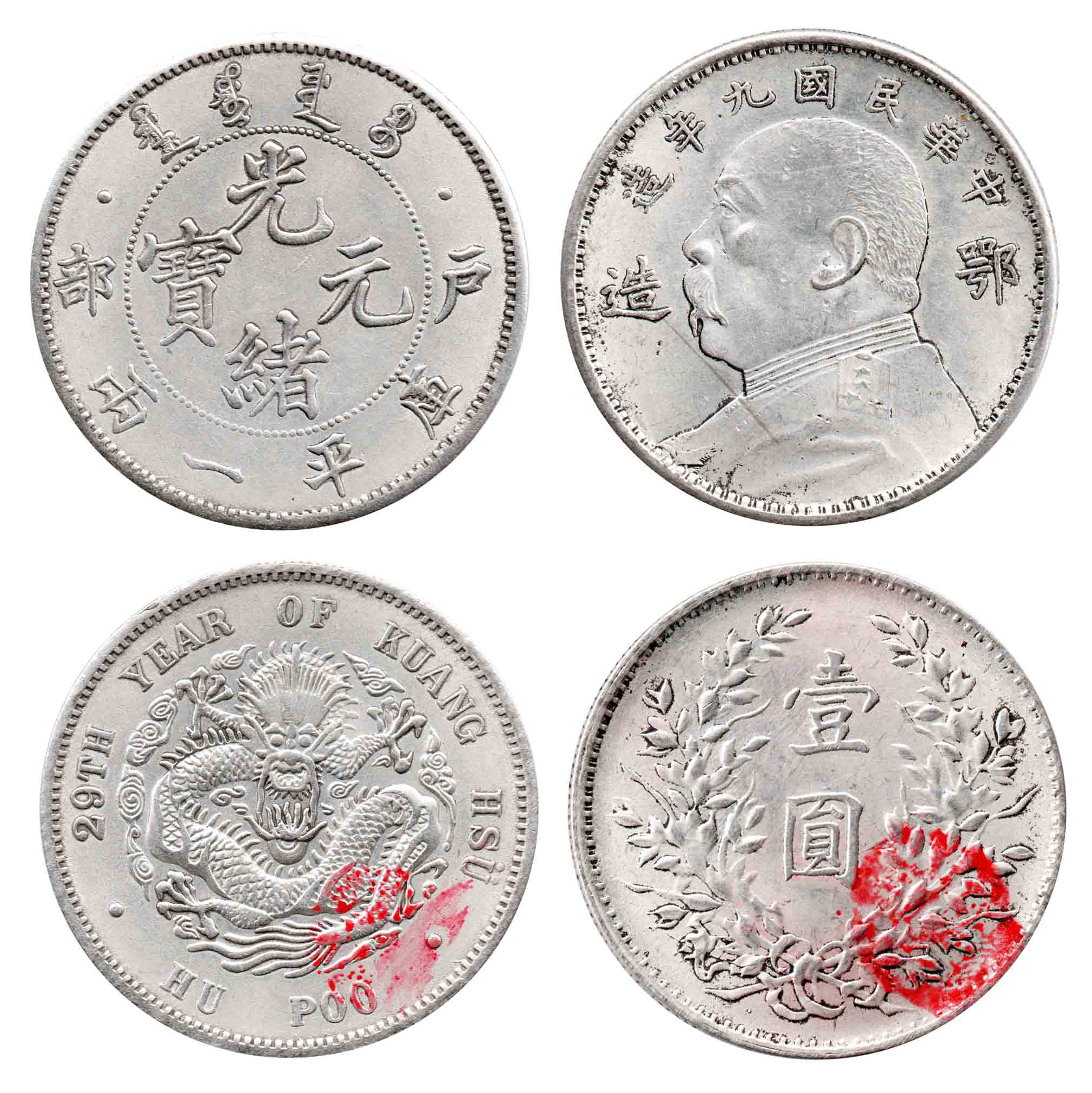 民国九年鄂造袁像壹圆,光绪元宝户部库平一两银币..